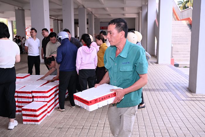 近日,持续高温天气给校园户外作业员工带来严峻挑战。为切实保障员工健康,传递组织关怀,校工会联合陵水县提蒙乡远景村村委会与海南师范大学生科院合作基地开展“夏日送清凉”慰问活动,由基地捐赠150余箱草莓味西红柿水果的于4月14日下午发放到教职工手中。