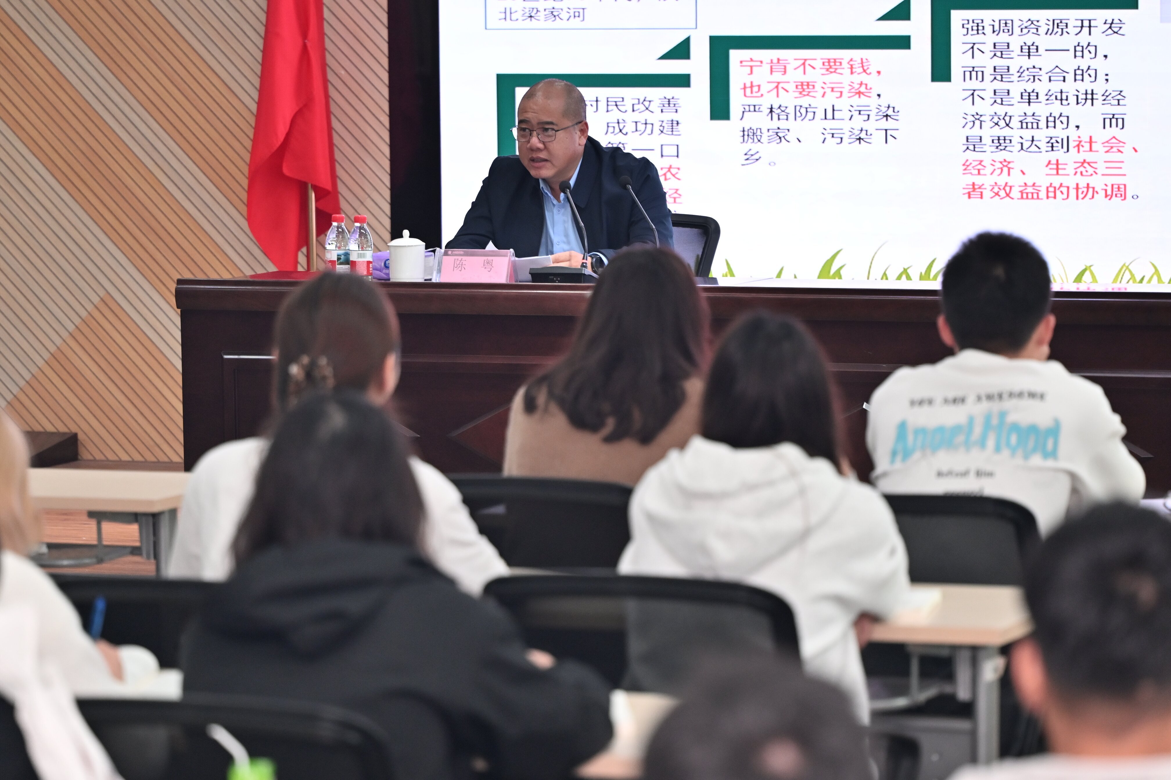 12月16日,海南省生态环境厅副厅长陈粤以“深入学习贯彻习近平生态文明思想,高质量建设国家生态文明试验区”为主题,为我校师生讲授了一堂内容丰富、思想深刻的思政课。